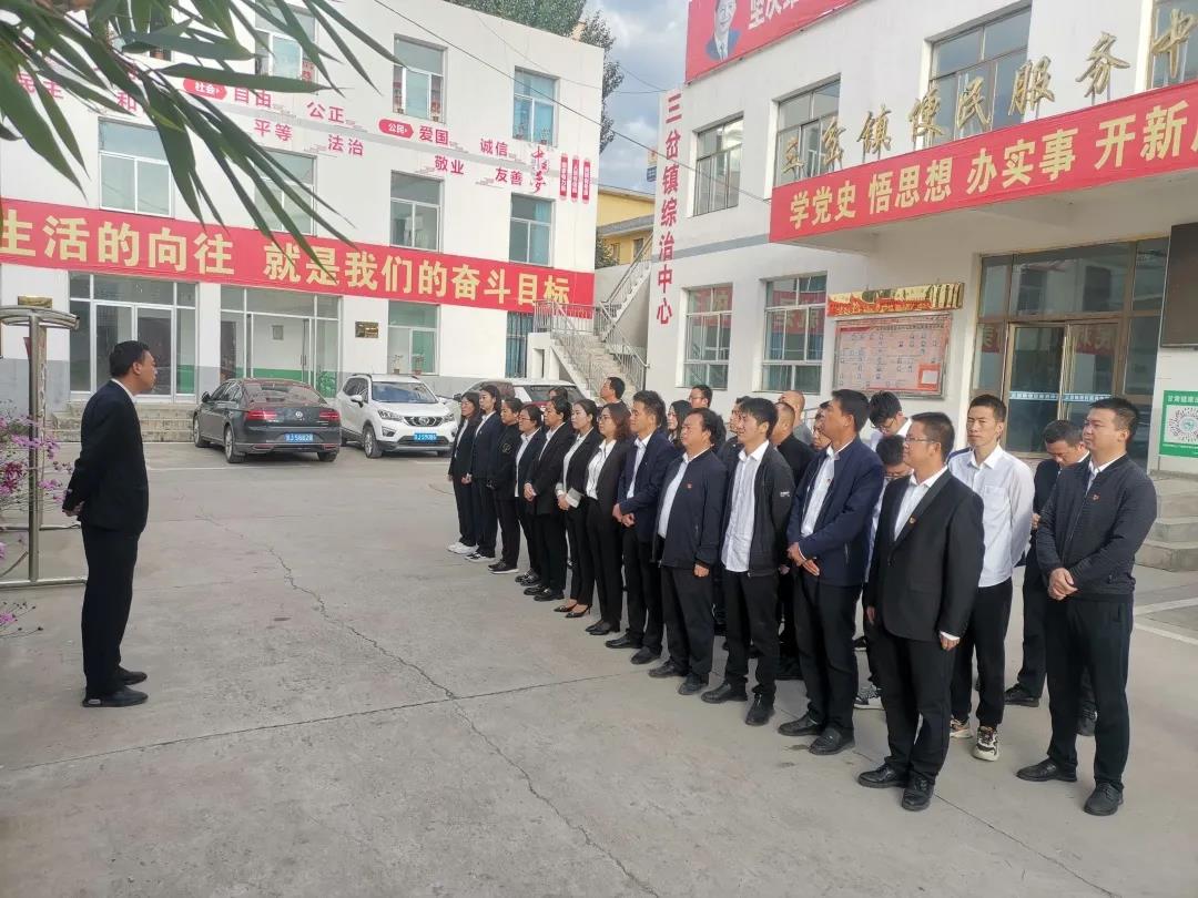 10月1日上午,在伟大祖国72岁生日来临之际,三岔镇举行了隆重的升国旗仪式,迎接“国庆”的到来,共同表达对伟大祖国的衷心祝福!全镇领导干部职工参加仪式。各村(社区)党群服务中心举行升国旗仪式。