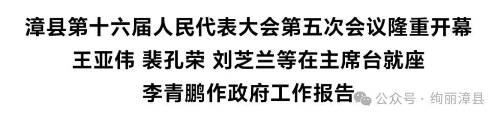 会场庄重简朴、气氛热烈。大会主席台帷幕正中的国徽在鲜艳的红旗映衬下熠熠生辉。会场上悬挂的“坚持以习近平新时代中国特色社会主义思想为指导,奋力谱写中国式现代化漳县篇章!”的横幅标语,鼓舞人心、催人奋进。